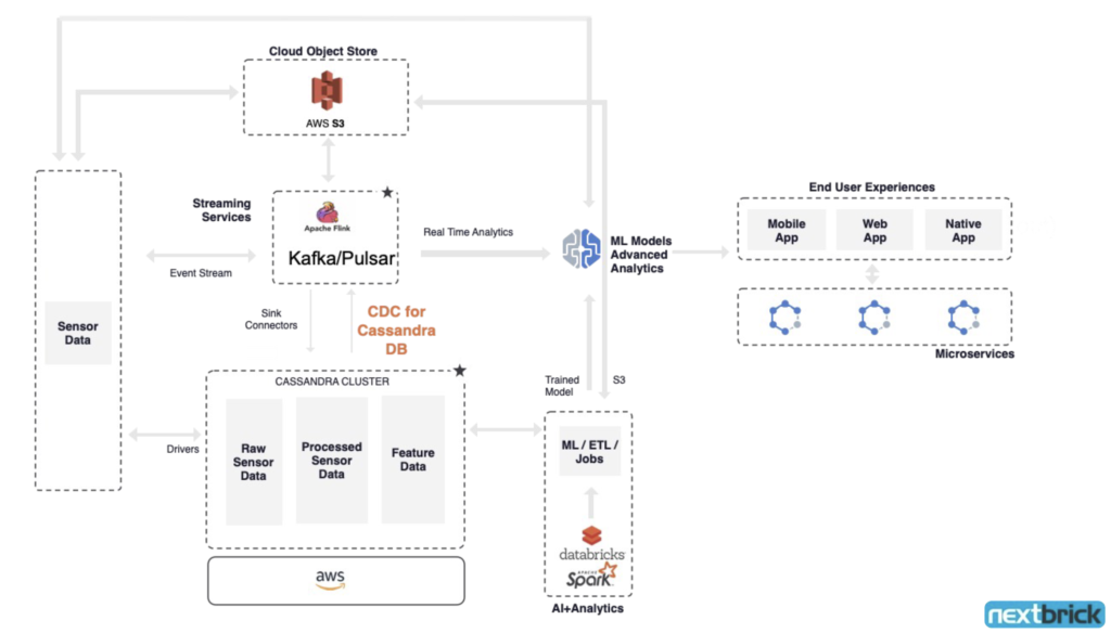 Sensor data is streamed into Kafka/Pulsar and also,cassandra DB